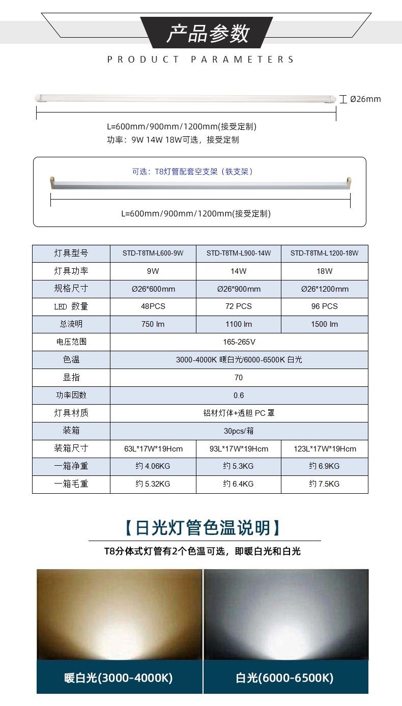 思拓达光电是集LED照明研发、生产、销售为一体的企业,近年来我们的接到越来越多的T8灯管的订单,而且数量也是越来越大,这说明LED T8灯管在市场的需求越来越大。我们一起来看看,T8灯管有哪些优势。