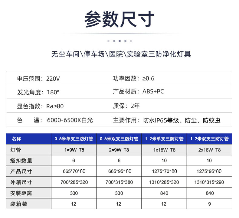 防水是三防灯基础的功能,通常以IP(Ingress Protection)等级标注。我们这款三防灯管的防水等级是IP65。