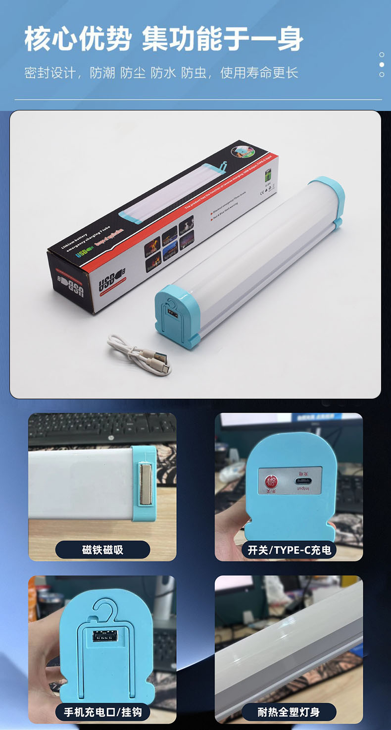思拓达光电新款-应急灯管家用摆摊灯夜市灯不插电野营应急灯磁吸悬挂USB充电灯管