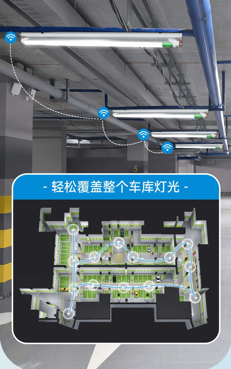 T8物联网灯管采无线组网技术,无需额外布线,替换传统灯管即可实现“即装即用”。每根灯管如同智能节点,自动组网形成覆盖全区域的通信网络。