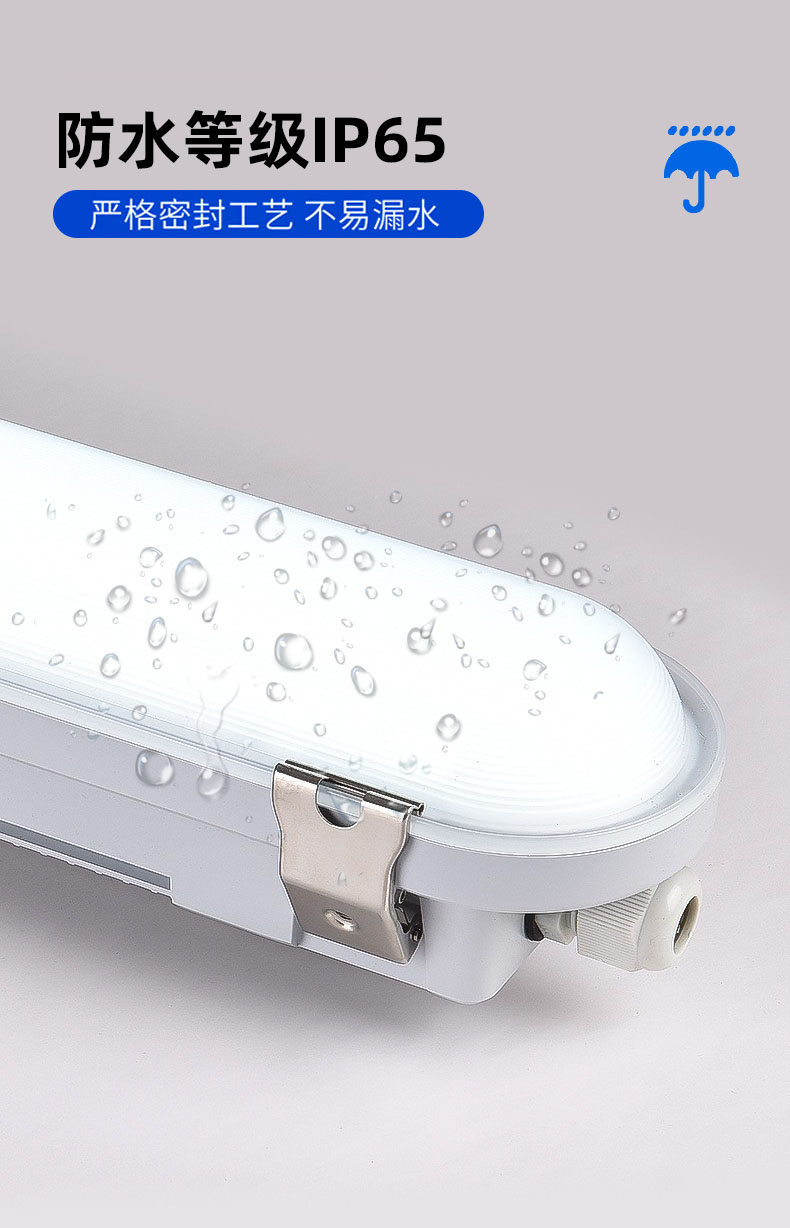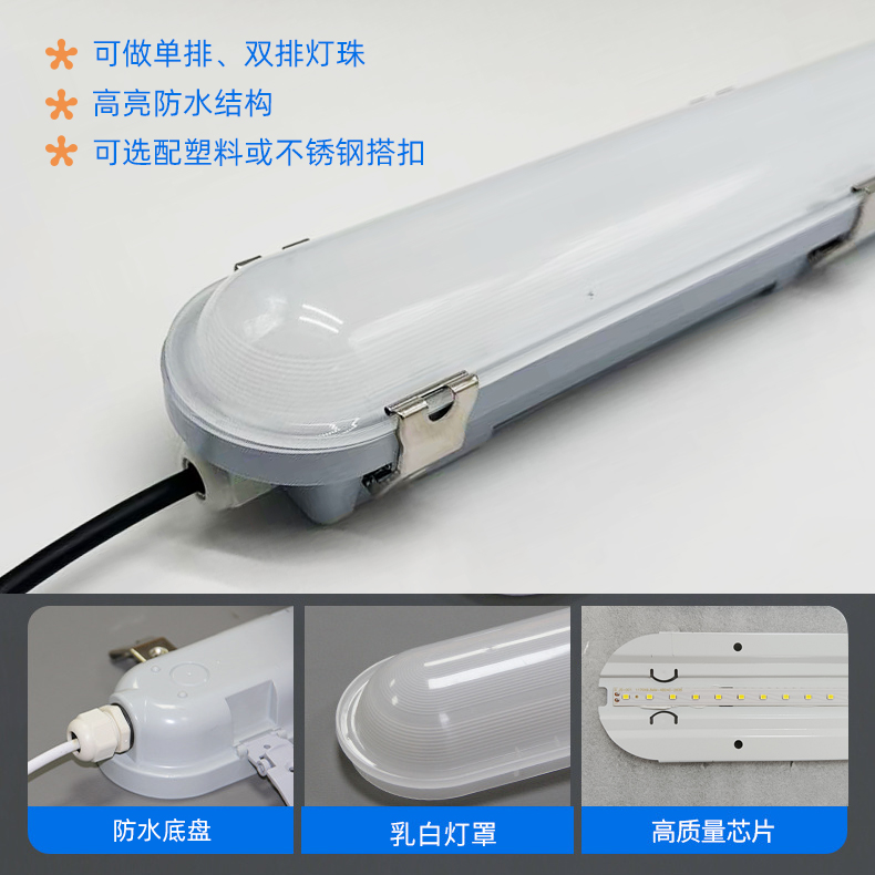 这种三防灯的外形更耐看,里面是硬灯条与灯罩一体式设计方案,不像之前的里面配的是T8灯管。